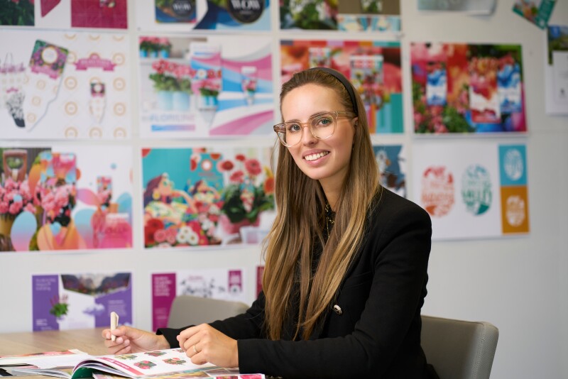 I've been working at HilverdaFlorist for three years as a Marketing & Design Employee. My job is very diverse. One day, I design social media posts or flyers, and the next, I create labels for a trade fair. This variety makes my job really fun; no day is the same.